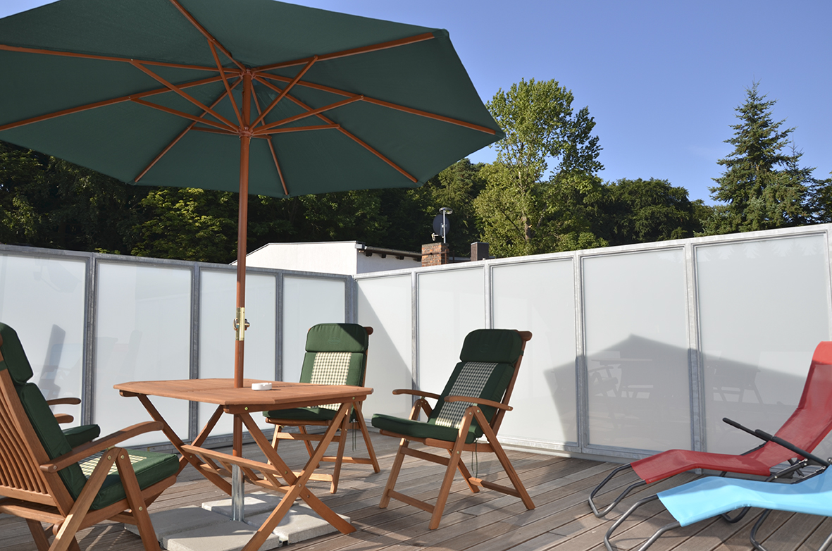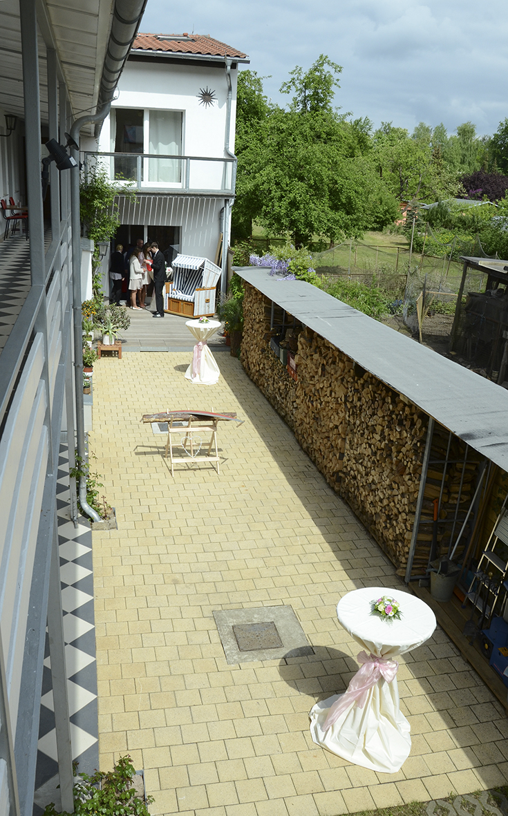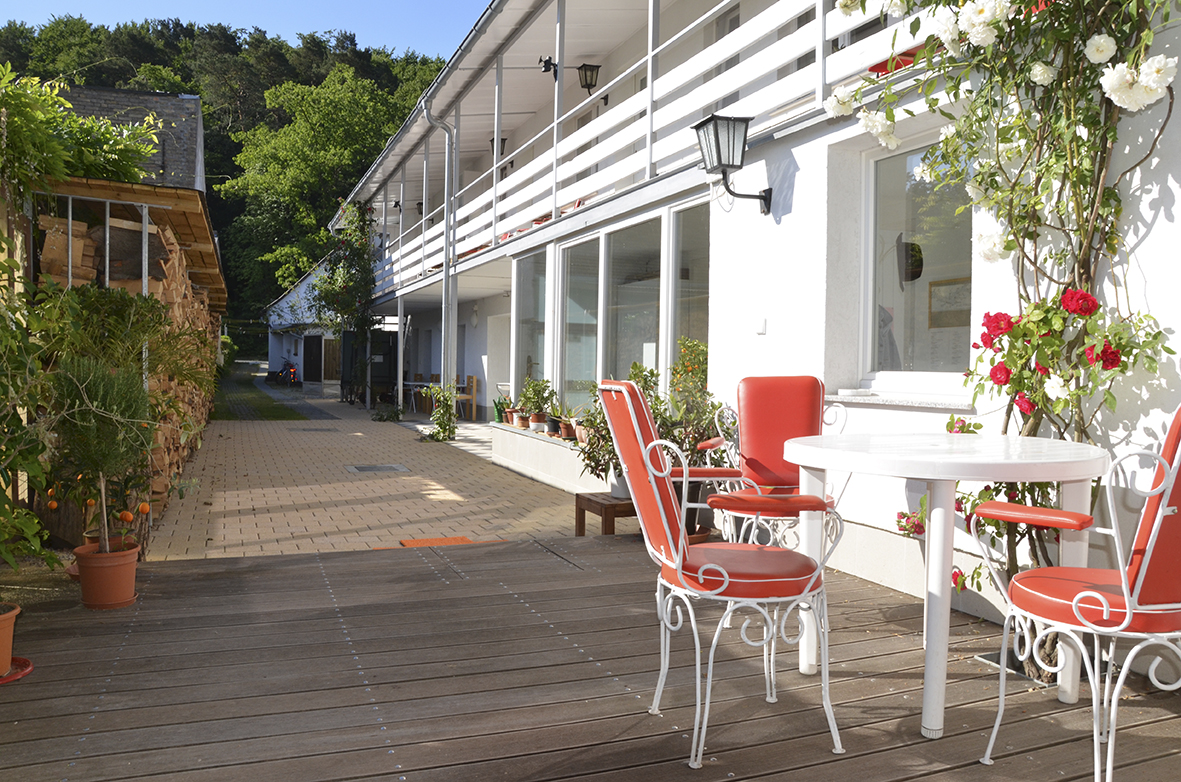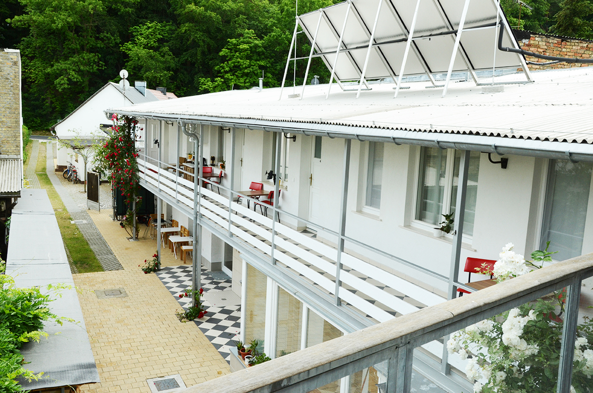 The "Lake View Rooms" and the „Courtyard View Room“ are located on the upper floor, with shared kitchen and bathroom, and have access to a 3 m x 10 m sized balcony overlooking the lake Werbellinsee. Each room has a queen size bed. In room 1 extra bed is possible.