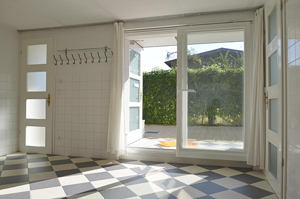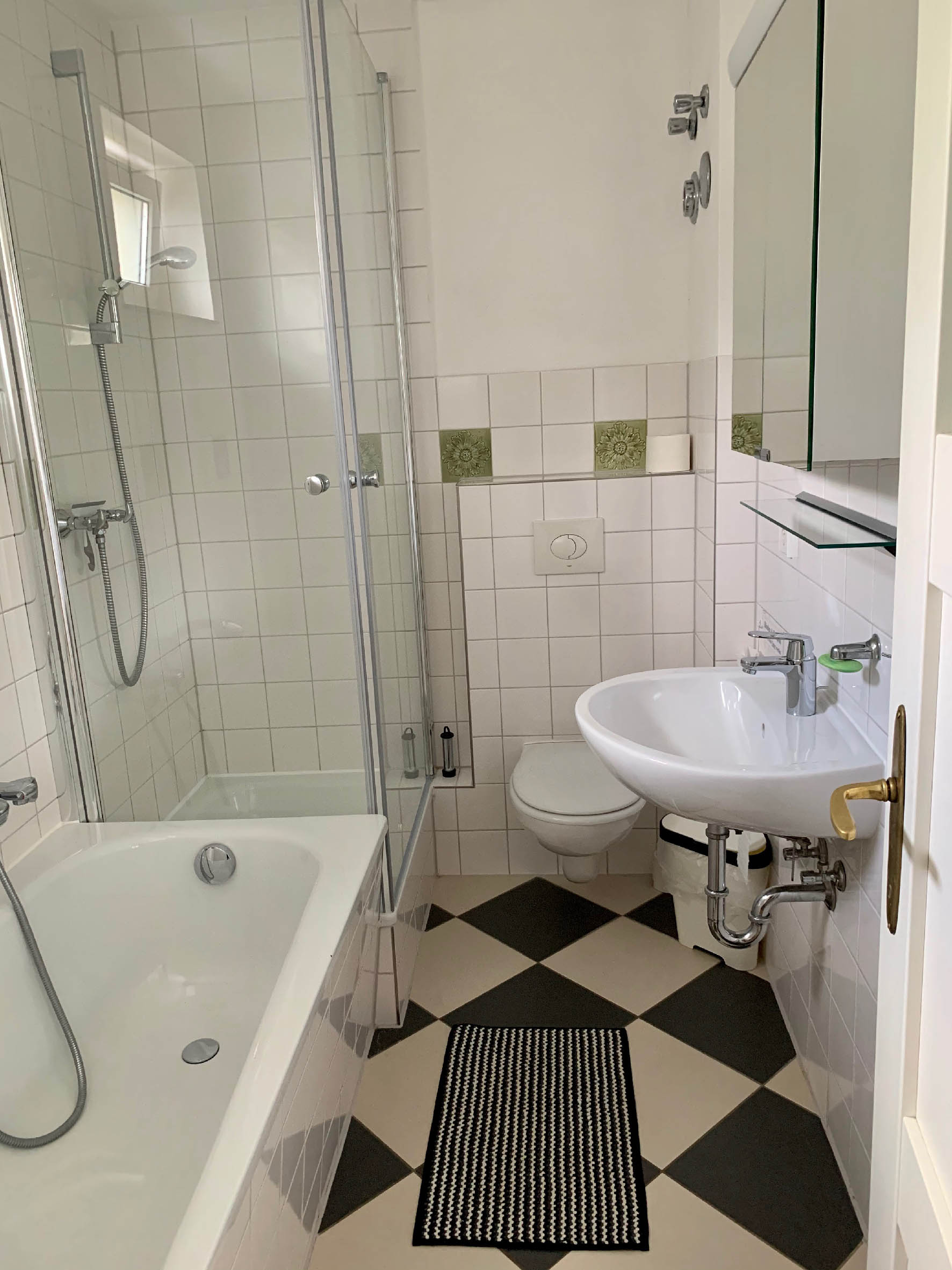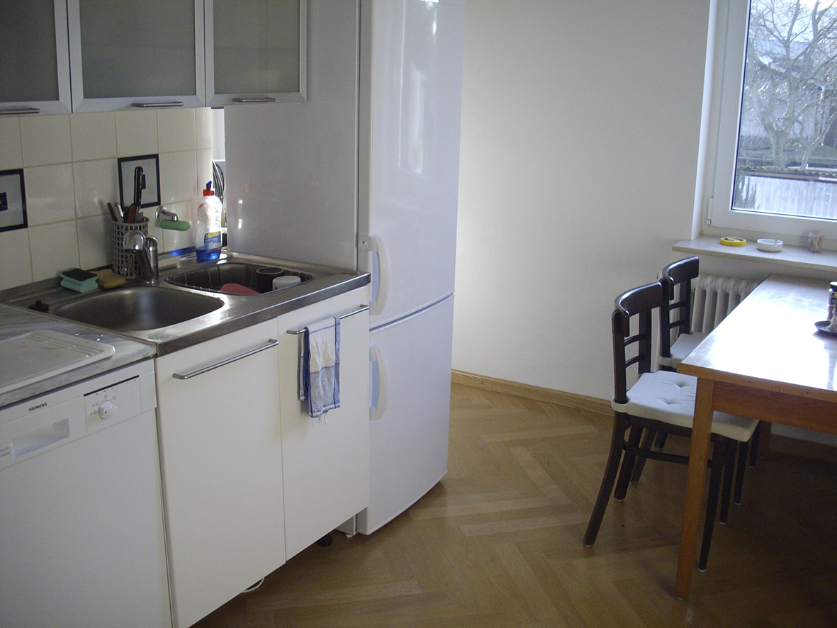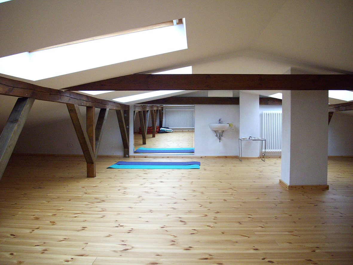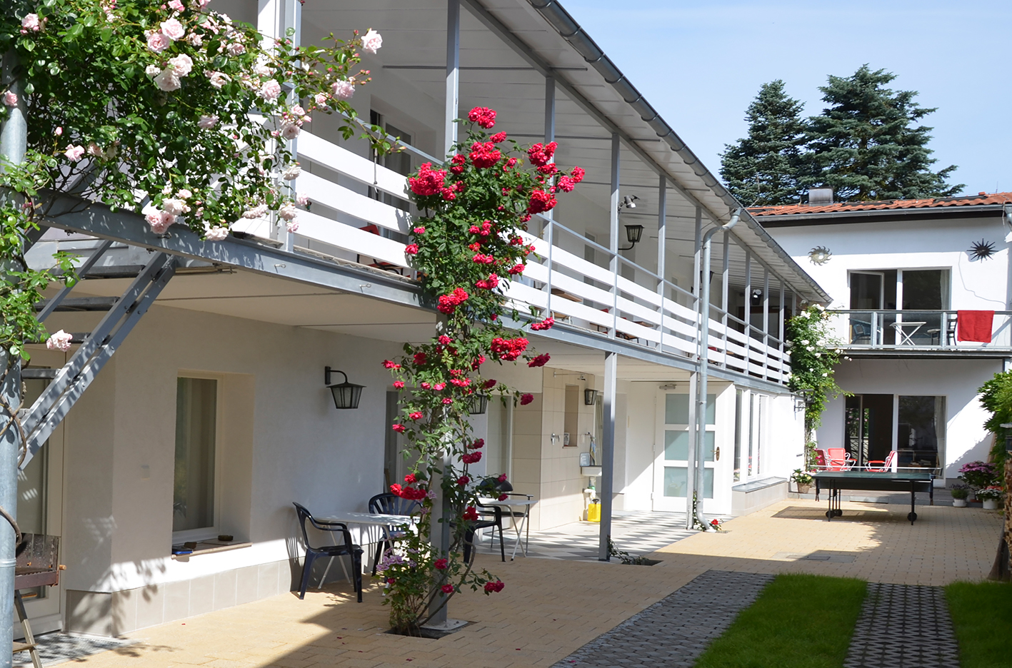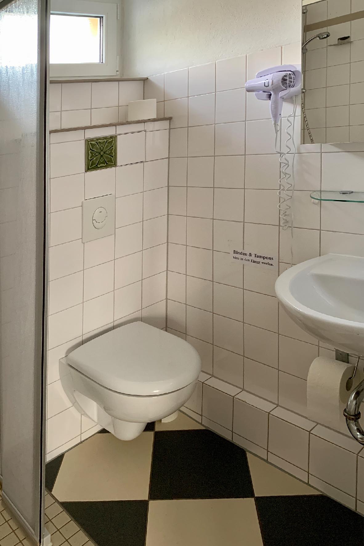 The „Courtyard Balcony Room“ (Hofbalkonzimmer) and the "Lake View Rooms" are located on the upper floor, with shared kitchen and bathroom, and has a private balcony to enjoy the morning sun overlooking the courtyard. It has two beds and a bunk bed (mattress : 90 cm x 2 m).